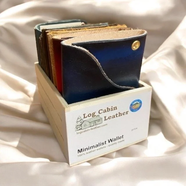 Handmade Minimalist Leather Wallets (Set of 6 in Wooden Crate Display)